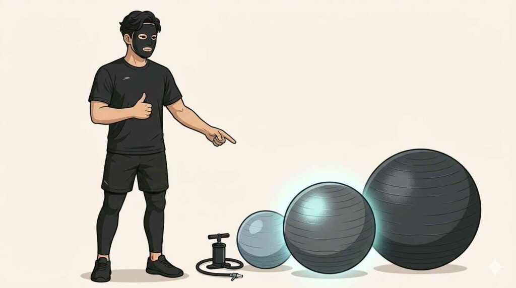 バランスボールは、サイズと空気圧で座りやすさが大きく変わります。