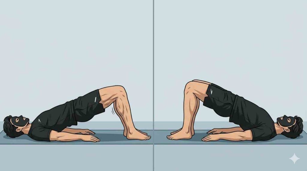 股関節前面の硬さが影響している場合は、ヒップリフトのフォーム調整だけでは改善しにくいため、腸腰筋が硬いと腰痛になりやすい?セルフチェック→ストレッチ→安全な鍛え方を先に確認してください。